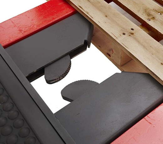 Para mejorar la productividad, nuestra pinza especial palet de bloqueo automático acomoda largueros de paletas que van desde 1,25 pulgadas a 5 pulgadas. Por lo que sus operadores pueden manejar prácticamente cualquier palet en el edificio.