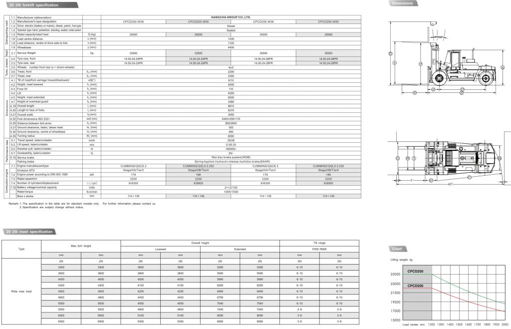 Mástil dúplex ensanchado, marco reforzado, visión amplia; Las válvulas duales limitan la velocidad, mejoran la seguridad y el desplazador lateral es la configuración estándar.