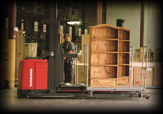 Muebles Recogepedidos de Raymond son ideales para la manipulación de ingeniería tales como muebles y cargas, de tamaño irregular voluminosos sin pallet. Seleccionar de diversas configuraciones de la horquilla y baseleg para satisfacer sus necesidades de aplicación.
