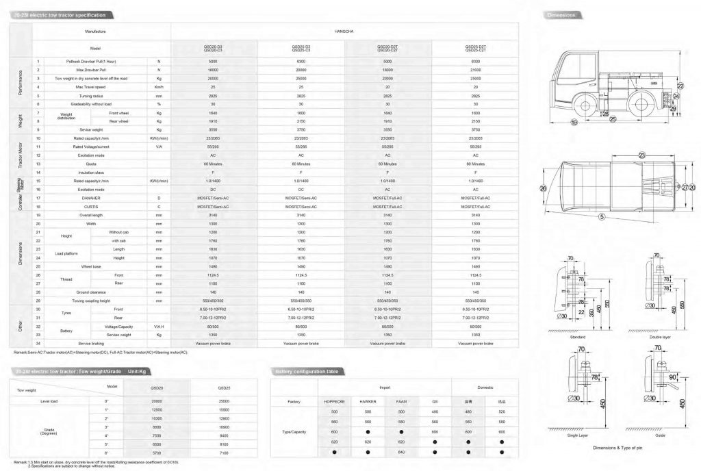 El tractor de arrastre eléctrico de Hangcha con capacidad de 20-25T es ideal para aplicaciones de largo recorrido y varios turnos. Muchos componentes se toman del diseño de los montacargas, incluidos el tren motriz y los frenos de servicio pesado, que son ideales para un tractor de arrastre.